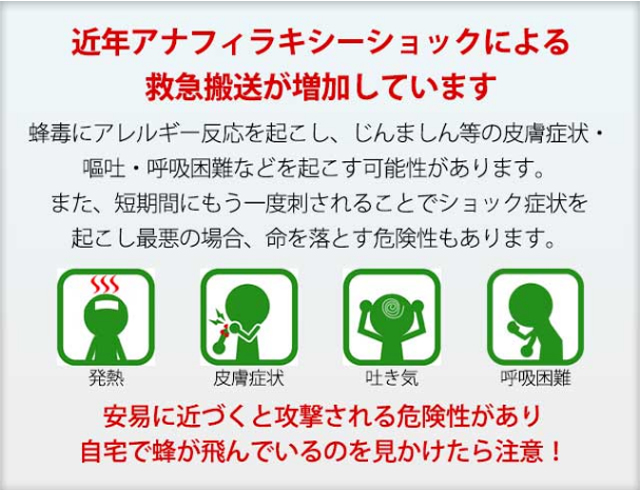 普通のハチであれば、ちょっと刺されたくらいなら「痛いなぁ」で済むかもしれませんしかし、スズメバチなど厄介なハチに刺されると、最悪の場合はアナフィラキシーショックを引き起こして命を落とすということもあります。